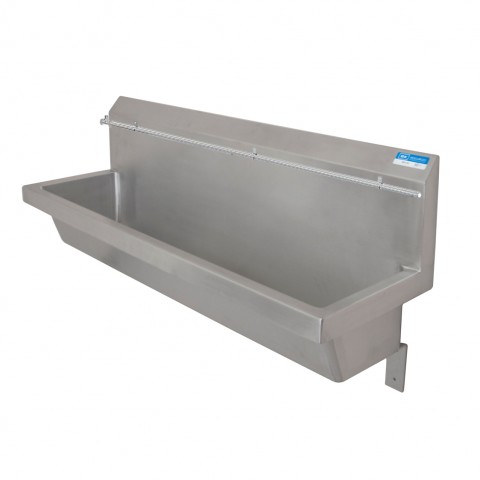 Urinal, wall mount design, 72", full length sloping backsplash, with flush pipe, includes wall mounting brackets & basket drain, 14/304 stainless steel
