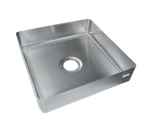 Pre-Rinse Bowl, 20"L x 20"W x 5"D, 3/4" covered corners, bottom crowned to 3-1/2" embossed opening, slope drain, interior/exterior seams polished, 16/304 stainless steel construction, NSF C2