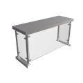 Sneeze Guard Overshelf, for steam tables, 12" deep x 36" wide top shelf, 18" from table to top of shelf, surface mounts directly to table with included self-tapping screws, 18 Ga stainless steel construction, fixed tempered glass panels (fits any BK Resources work table, 2-4 week lead time)
