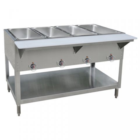 Hot Food Table, LP gas, (4) wells, with cutting board shelf, stainless steel, adjustable undershelf, 3,500 BTUs per burner (contact factory for price)