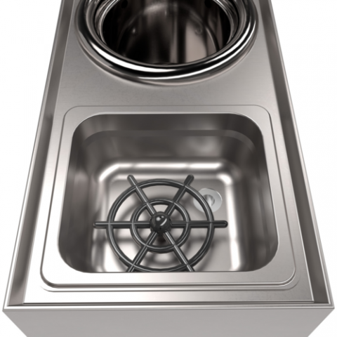 Underbar Speed Station, 8"W x 18-1/4"D x 34"H, 4' riser, dipper well faucet, dipper well bowl with basket drain (BK-DWBA), push down glass rinser, 18/340 stainless steel construction, pedestal base
