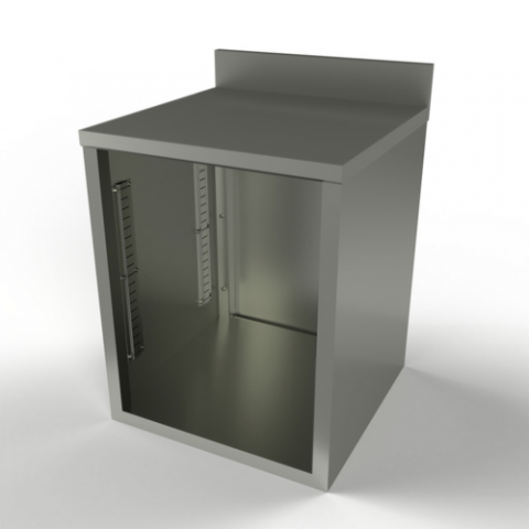 Under Bar Cabinet, 24"W x 24"D base, 5" Riser, 14 ga stainless steel top, 18 ga stainless steel construction