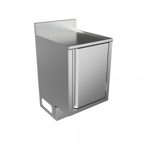 Call Series Underbar Cabinet, flat top, 18"x21", pedestal base, 18-gauge stainless steel construction, accepts optional adjustable shelf, riser, hinged door, (3-10 Day Lead Time).