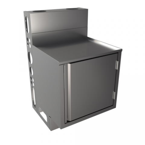 Top Shelf Underbar Cabinet, flat top with raised edge, 24"x21", die wall, 18-gauge stainless steel construction, accepts optional adjustable shelf, riser, hinged door, (3-10 Day Lead Time)