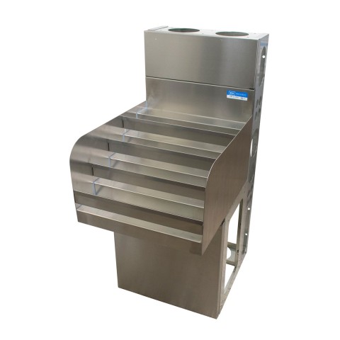 Underbar Liquor Bottle Display Unit, 36"W X 21-1/4"D x 33-1/2"H, (4) steps with guard rail, approximately (40) bottle capacity, 18/304 stainless steel construction, 1-5/8", diameter die wall and base, NSF
