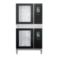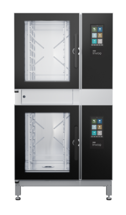 Blodgett INVOQ Model No. 61BLE/61BLE-PT, Combi Oven Steamer, Electric, boilerless, Pass-thru, 61BLE-PT stacked on 61BLE-PT, (10) 12" x 20" hotel pan capacity or (5) + (5) full size 18" x 26" sheet pan capacity (using MultiRack option), Stacking kit included, (2) + (2) side racks with non-tilt support rails, (5) + (5) wire shelves, touch screen controls, multiple cooking modes, SmartChef, MenuPlanner, CombiSpeed/CombiSense, stores up to 1,500 recipes, built-in hand shower, CombiSteam: Injection Steam, external temperature probe, Delta‐T cooking, Cook & Hold, USB port, Cloud Connectivity (optional), HACCP, CareCycle Tablet-based automatic cleaning system, heat protection with triple‐pane glass door, stainless steel exterior & interior, cULus, NSF, CE, ENERGY STAR®
