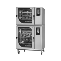 Blodgett INVOQ Model No. 62BE/102BE, Combi Oven Steamer, Electric, boiler, 62BE stacked on 102BE, (7) + (10) full size 18" x 26" sheet pan or (34) 12" x 20" hotel pan capacity, Stacking kit included, (2) + (2) side racks with non-tilt support rails, (5) + (8) wire shelves, touch screen controls, multiple cooking modes, SmartChef, MenuPlanner, CombiSpeed/CombiSense, stores up to 1,500 recipes, built-in hand shower, HybridSteam: Injection Steam & Boiler Steam, external temperature probe, Delta‐T cooking, Cook & Hold, USB port, Cloud Connectivity (optional), HACCP, CareCycle Tablet-based automatic cleaning system, heat protection with triple‐pane glass door, stainless steel exterior & interior, cULus, NSF, CE, ENERGY STAR®