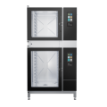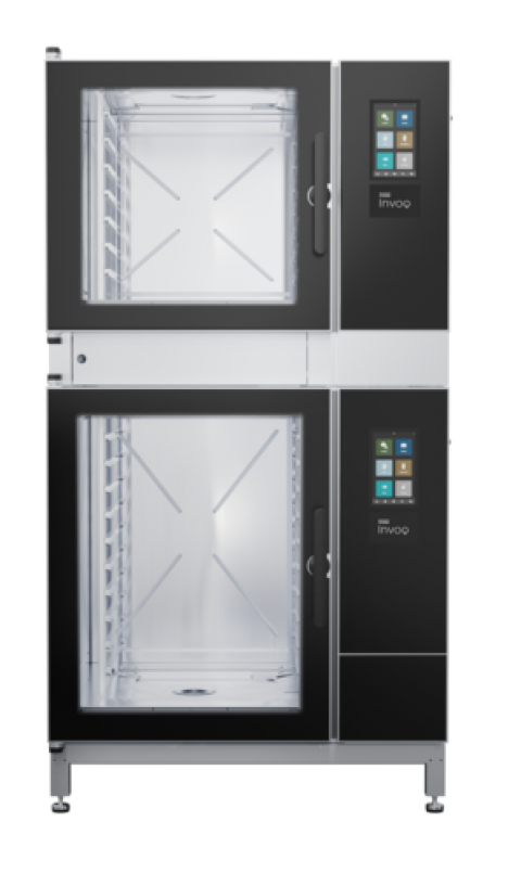 Blodgett INVOQ Model No. 62BG/102BG, Combi Oven Steamer, Gas, boiler, 62BG stacked on 102BG, capacity (16) 18" x 26" full size sheet or (32) 12" x 20" full size hotel (GN 1/1) pan capacity (standard), Stacking kit included, (2) + (2) side racks with non-tilt support rails, (5) + (8) stainless steel wire racks (included), touch screen controls, SmartChef program, MenuPlanner, CombiSpeed/CombiSense cooking modes, built-in hand shower, stores up to 1,500 recipes, HybridSteam system with Injection Steam & Boiler Steam, external temperature probe, Delta‐T cooking, Cook & Hold, USB port, HACCP, CareCycle Tablet-based automatic cleaning system, heat protection with triple‐pane glass door, stainless steel exterior & interior, (1) 136,400 + (1) 150,100 BTU, cULus, NSF, CE