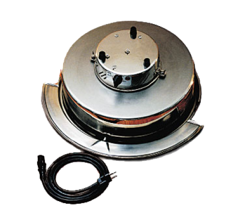 Water Pan, 17" x 17-3/8" x 4-7/8", front flange, electric, round, dripless, includes (1) #11002 dripless water pan and (1) #12090 attached heater, stainless steel