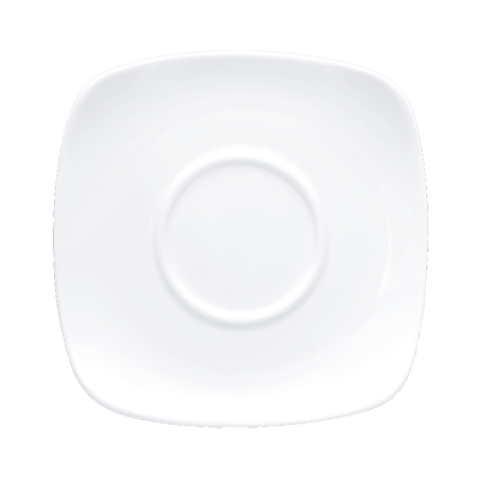 Globe Saucer, 6" x 6" x 9/10", square, rounded corners, coupe, fully vitrified, alumina body, microwave, dishwasher & oven safe, porcelain, white (3 year chip warranty) (minimum order = case quantity)