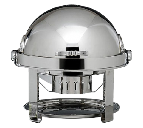 Elite Chafer, round, 2 gallon, stainless steel with chrome plated Contemporary legs, handles & medallions, dripless water pan & cover, windguard, full roll down & halfway locking cover, slow down lock mechanism, Limited Lifetime Warranty