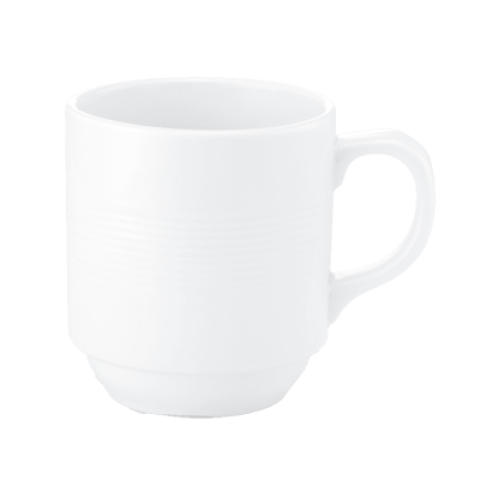 Stacked Lines Mug, 8 oz., 4-3/10" x 3-1/10" x 3-2/5", stackable, porcelain (minimum order = case quantity)