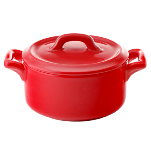Cocottes Cover, for 4" dia. round baker base, porcelain, red (minimum order = case quantity)
