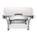 Elite Chafer, rectangular, 2 gallon, stainless steel with chrome Roman legs, handles & medallions, dripless water pan & cover, windguard, full roll down & halfway locking cover, slow down lock mechanism, Bianco finish, lifetime warranty