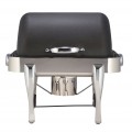 Sleek Line Chafer, 3 qt., 18" x 15-3/4" x 16", small, rectangular, roman legs, chrome trim, stainless steel, Nero finish, lifetime warranty
