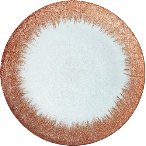 Charger Plate, 13" dia, glass, Rose Gold Foil (hand wash only)