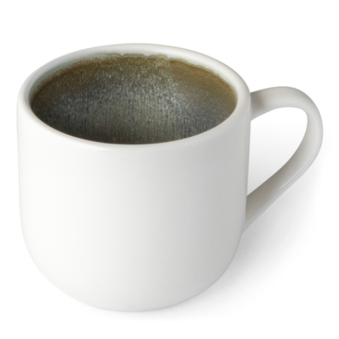 Tavola Mug, 10 oz., round, 3.5" dia.x 2.15"H, fully vitrified, microwave, dishwasher & oven safe up to 350°F, porcelain, Fog, inner green/outer white (1 year chip warranty) (minimum order = case quantity)