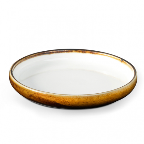 Tavola Plate, round, 7" dia., fully vitrified, microwave, dishwasher & oven safe up to 350°F, porcelain, Amaretto, inner white/outer brown (1 year chip warranty) (minimum order = case quantity)