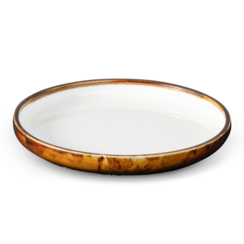 Tavola Plate, round, 10" dia., fully vitrified, microwave, dishwasher & oven safe up to 350°F, porcelain, Amaretto, inner white/outer brown (1 year chip warranty) (minimum order = case quantity)
