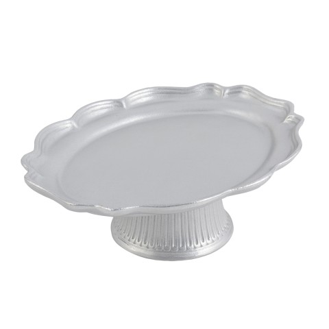 Queen Anne Platter, 10-7/8" x 14-3/4" x 4" H, pedestal, aluminum with Pewter-Glo finish