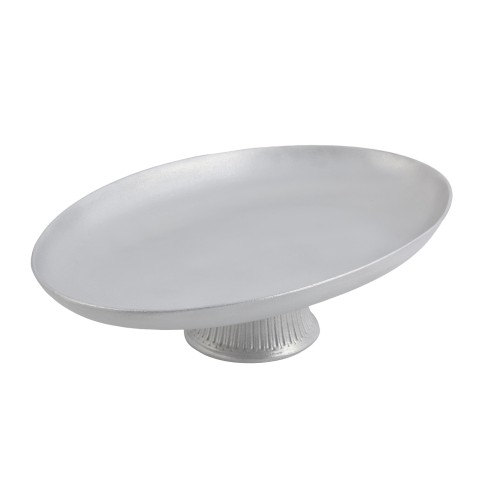 Platter, 17" x 12-1/4" x 5" h pedestal, coupe, aluminum with Pewter-Glo finish