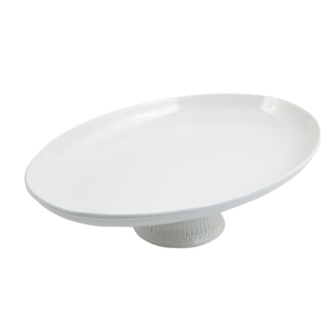 Platter, 17" x 12-1/4" x 5" H pedestal, coupe, aluminum with ceramic-look coating, Sandstone, Black Speckled
