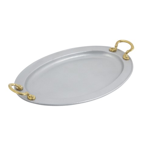 Serving Tray, 14-1/4" x 20-1/4", oval, with round handles, aluminum with Pewter-Glo finish