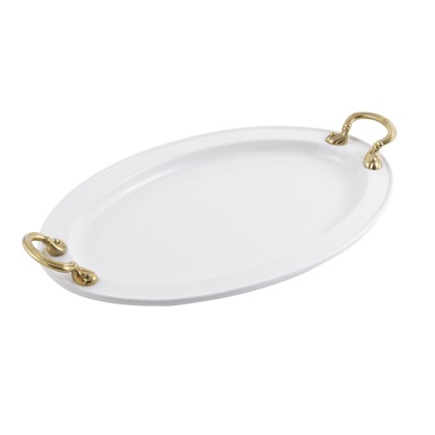 Serving Tray, 14-1/4" x 20-1/4", oval, with round handles, aluminum with ceramic-look coating, Sandstone, Black Speckled