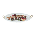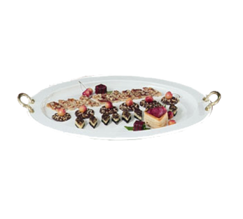 Serving Tray, 18" x 24-3/4", oval, with 4 brass handles and legs, ceramic-look coating, Sandstone, Fiesta Gold