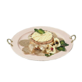 Serving Tray, 22" dia., round, with 2 brass handles and legs, ceramic-look coating, Sandstone, Black Speckled
