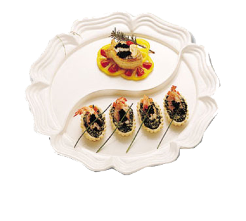 Queen Anne Divided Platter, 18" dia., round, aluminum with ceramic-look coating, Sandstone, Dark Blue, NSF