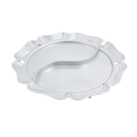 Queen Anne Divided Platter, 20" dia., round, aluminum with Pewter-Glo finish, NSF