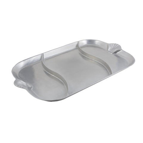 Divided Platter, 22" x 32", with shell handles, divided, aluminum with Pewter-Glo finish, NSF