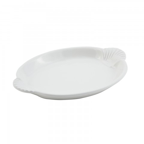 Platter, 8" x 11-1/2", with shell handles, aluminum with ceramic-look coating, Sandstone, Matte Brown, NSF