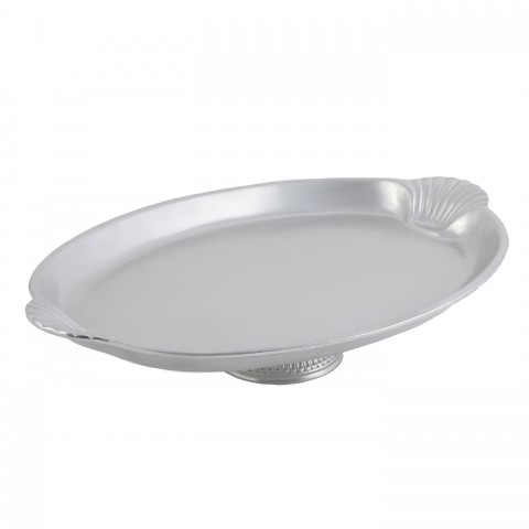 Platter, 22-1/2" x 15-3/8" x 4-1/2", pedestal, aluminum with Pewter-Glo finish