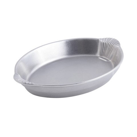 Casserole Dish, 4 qt., 12" x 17" x 2-1/2", oval, with shell handles, aluminum with Pewter-Glo finish