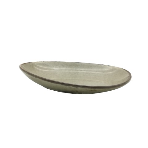 Tavola Plate, 8“L x 5-1/4"W x 1-1/4"H, oval (free form), deep, fully vitrified, microwave, dishwasher & oven safe up to 350°F, porcelain, Harbour, reactive gray (1 year chip warranty) (minimum order = case quantity)