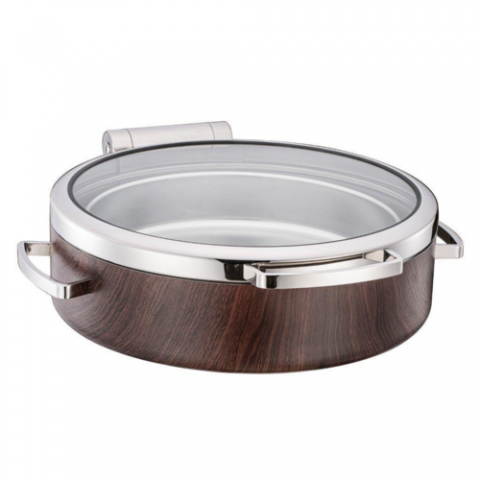 Magnifico Induction Chafer, 19.5" x 21" x 6.5"H, full size, round, 6.34qt., glass lid with hydraulic hinge, Mahogany