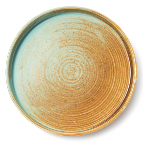 Lago Dinner Plate, 10" dia., round, reactive glaze, ceramic, Teal/Copper (1 year chip warranty) (minimum order = case quantity)