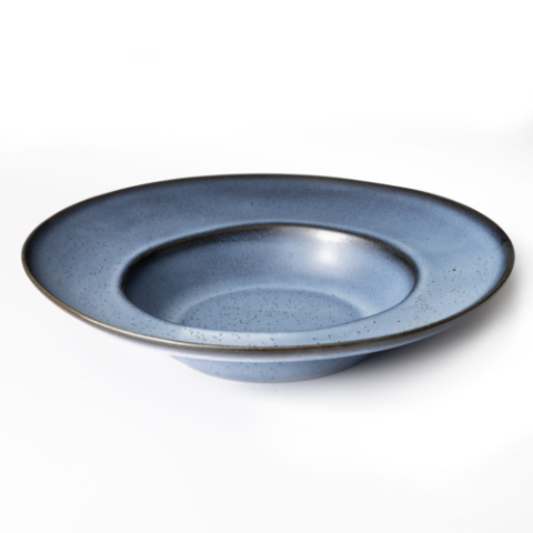 Tavola Pasta/Soup Plate, 11" dia. x 2-1/4"H, round, 18 oz. capacity, wide rim, fully vitrified, microwave, dishwasher & oven safe up to 350°F, porcelain, Venezia, matte finish, reactive blue (1 year chip warranty) (minimum order = case quantity)