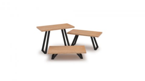 Buffet Risers, 15.75" X 8" X 4", Rectangular, Oak Solid Wood & Black Stainless Steel