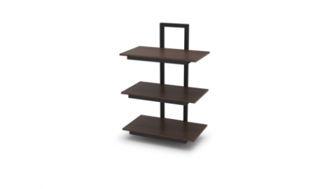 3 Tier Buffet Display, 18" X 11" X 25", Rectangular, Black Walnut Solid Wood & Black Stainless Steel