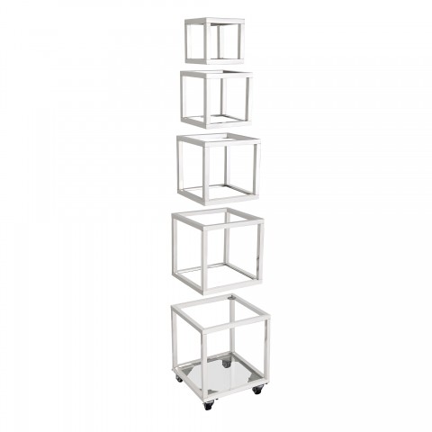 Cube Buffet Tower, 5-piece set, various sizes, 17"W x 17"D x 66"H O.A., (5) removable glass shelves, stainless steel frame, 2-1/2" dia. locking casters on largest cube