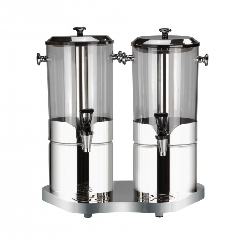 Juice Dispenser, double, (2) 2 gallon each cylinder, 19-1/4" x 10-1/2" x 22"H O.A., round, stainless steel ice chamber, stainless steel base