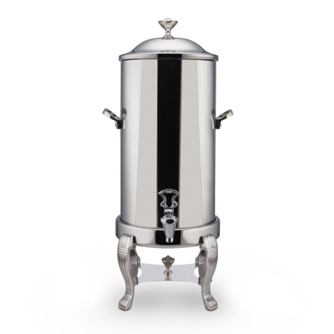 Coffee Urn/Server, 2 gallon, includes cover-up with vacuum insert, non-insulated, single wall, stainless steel exterior with brass trim, must be brewed at 200° F or higher to maintain temperature for 3 hours, Roman