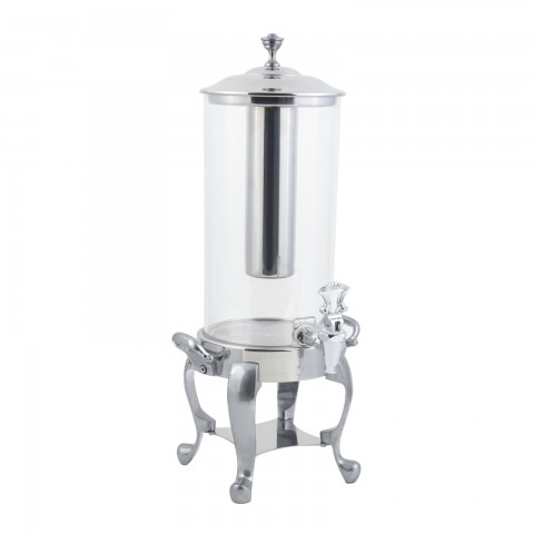 Juice Dispenser, 2 gallon, 12" dia. x 25-1/2"H, round, stainless steel ice chamber, stainless steel base with chrome finisH, round, Roman