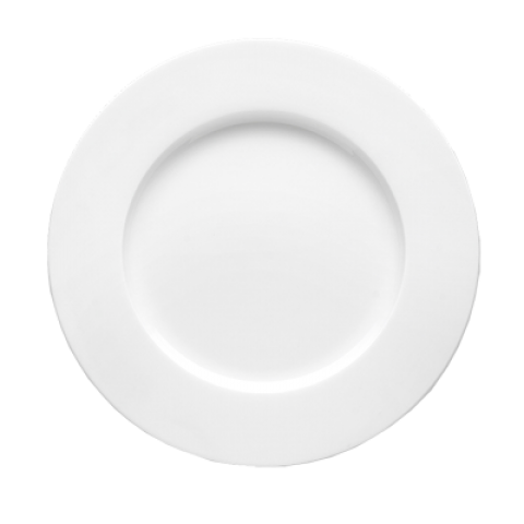 Dinner Plate, 11" dia., round, wide rim, fully vitrified, alumina body, microwave, dishwasher & oven safe, bone china, white (3 year chip warranty) (minimum order = case quantity)