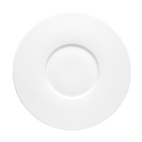 Plate, 11" dia., round, super wide rim, fully vitrified, alumina body, microwave, dishwasher & oven safe, bone china, white (3 year chip warranty) (minimum order = case quantity)