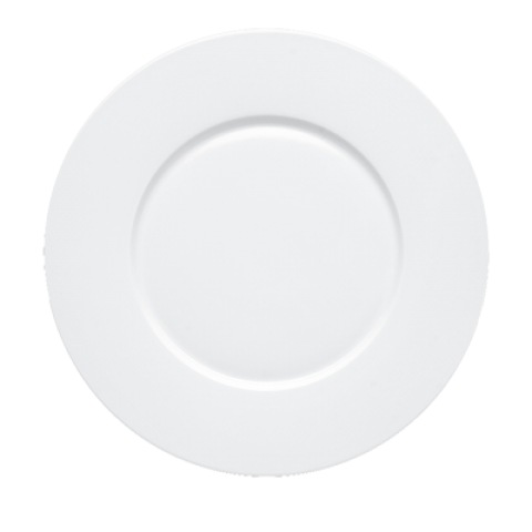 Charger Plate, 12" dia., round, wide rim, fully vitrified, alumina body, microwave, dishwasher & oven safe, bone china, white (3 year chip warranty) (minimum order = case quantity)