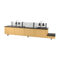 Custom Chef's Table, 34" x 174" x 60", with HPL body, features: (2) 2-well stem tables, (2) 1800 watt induction stoves, (2) 300 watt adjustable and removable heat lamps, (1) slide-out plating/utility shelf, slots for (16) 18" x 26" standard full size sheet pans, removable stainless steel vertical food guard with over shelf, insulated ice well, recessed tray shelf, (2) 120v/60/1-ph, 20 amps, NEMA L5-20P, (1) 120v/60/1-ph, 30 amps, NEMA L5-30P